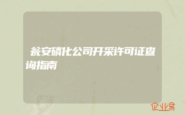 - 瓮安磷化公司开采许可证查询指南一、了解开采许可证的重要性对于瓮安磷化公司而言,开采许可证是其开展采矿作业的重要法律依据。该许可证证明了公司在法律允许范围内进行矿产资源开采的资格。因此,查询开采许可证的状态和有效性,对于保障企业合法运营和作业