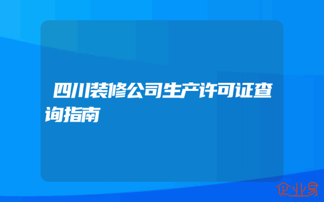 - 四川装修公司生产许可证查询指南在现代装修行业的日新月异之下,生产许可证对于一家装修公司的重要性愈发凸显。本文旨在指导四川地区装修公司如何查询生产许可证,以便保障企业的合法运营和客户权益。一、了解生产许可证生产许可证是国家为规范企业生产行为,