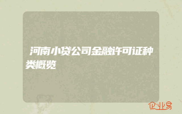 - 河南小贷公司金融许可证种类概览一、金融许可证概述在金融行业中,许可证是监管的重要工具,对于小贷公司而言,金融许可证是开展业务的必备资质。河南省作为经济大省,其金融市场的规范发展离不开各类金融许可证的监管。小贷公司要想在河南省合法经营