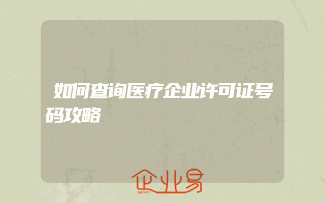 - 如何查询医疗企业许可证号码攻略