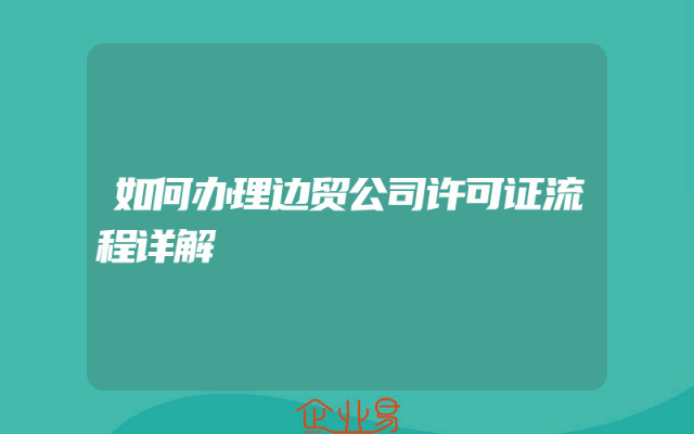 - 如何办理边贸公司许可证流程详解在现代国际贸易环境中,边贸公司作为连接国内外市场的重要桥梁,其运营和发展越来越受关注。要想合法经营边贸业务,获取边贸公司许可证是不可或缺的一环。本文将详细解读边贸公司许可证的办理流程,帮助有意涉足此领域