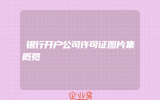 - 银行开户公司许可证图片集概览一、许可证的重要性及其概述对于企业来说,银行开户公司许可证是一个重要的文件,它代表着企业在金融领域的合法身份。此许可证由中国人民银行或相关金融机构颁发,证明了企业已经具备在特定银行开设账户、进行金融交易的资质和权
