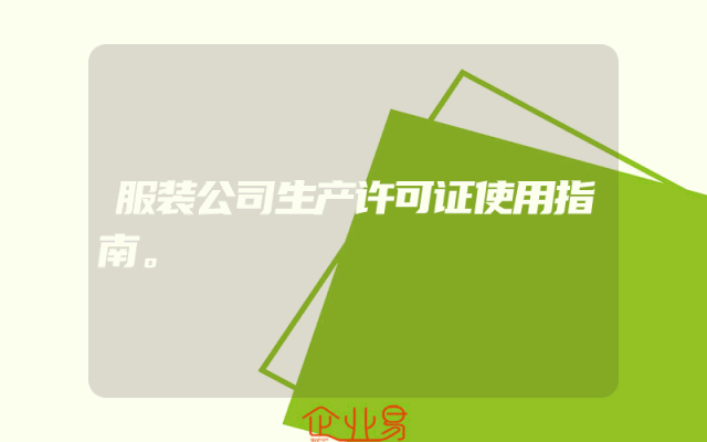 - 服装公司生产许可证使用指南了解服装公司生产许可证的重要性在现代商业环境中,对于服装公司而言,生产许可证不仅是合法生产的凭证,更是企业声誉和市场地位的体现。此证书代表了企业的生产能力和质量水平得到了相关部门的认可。本文旨在为广大服装公司提供生