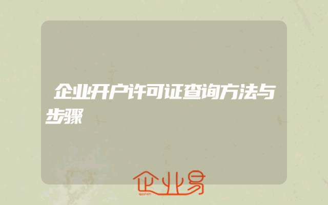 - 企业开户许可证查询方法与步骤一、了解开户许可证企业开户许可证是企业在进行银行业务时的一个重要凭证,它证明了企业在特定银行开设了账户,并具备进行各类银行交易的权利。查询企业开户许可证的过程并不复杂,只要了解基本的查询方法和步骤,就可以轻松完成