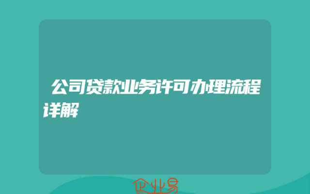 - 公司贷款业务许可办理流程详解