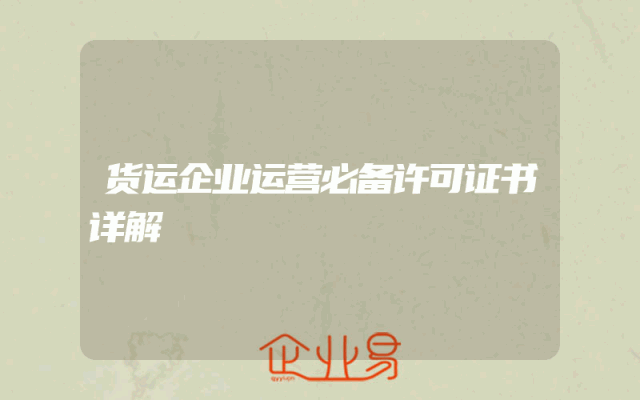- 货运企业运营必备许可证书详解