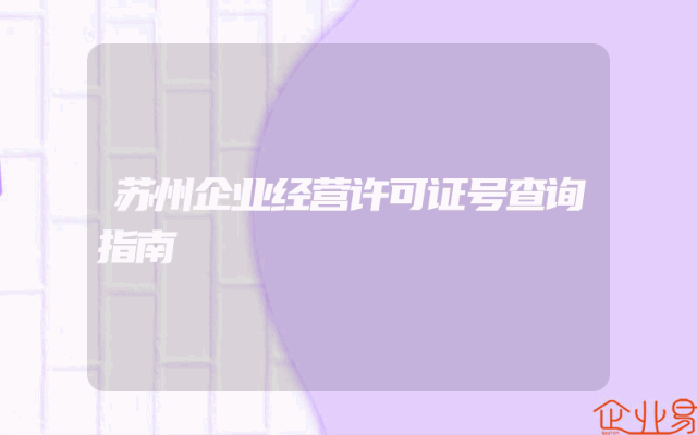 - 苏州企业经营许可证号查询指南一、许可证的重要性经营许可证是企业合法经营的凭证,对于在苏州开展业务的企业来说,经营许可证更是不可或缺的重要文件。持有合法经营许可证,不仅能够保障企业的合法权益,还能提升企业的信誉度和市场竞争力。二、查询准备在查