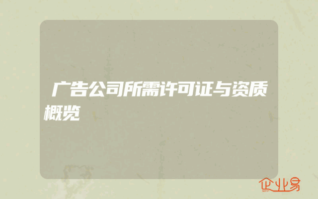 - 广告公司所需许可证与资质概览一、广告公司的基本许可证要求在现代社会,广告公司作为一个商业实体,需要遵守相关法律法规,获取相应的许可证以合法运营。最基本的许可证包括工商营业执照、税务登记证以及可能涉及的消防安全证书等。二、广告内容相关的资质要