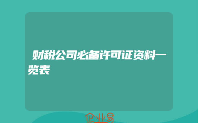 - 财税公司必备许可证资料一览表一、财税公司运营背景及许可证的重要性在当今市场经济环境下,财税公司作为提供专业财税服务的机构,对于企业的运营发展起着至关重要的作用。为了合法经营并保障服务质量,财税公司必须办理一系列许可证。这些许可证不仅是公司合
