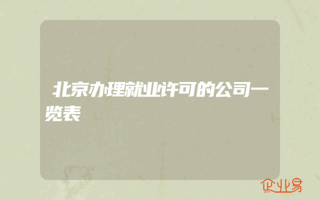 - 北京办理就业许可的公司一览表一、就业许可办理概述在北京这样的大都市,随着经济的快速发展和人口的不断增长,越来越多的公司需要招聘外籍员工。对于这些公司来说,办理就业许可成为了招聘外籍员工的重要一环。本文将详细介绍在北京办理就业许可的公司一览表