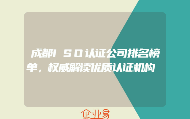- 成都ISO认证公司排名榜单,权威解读优质认证机构