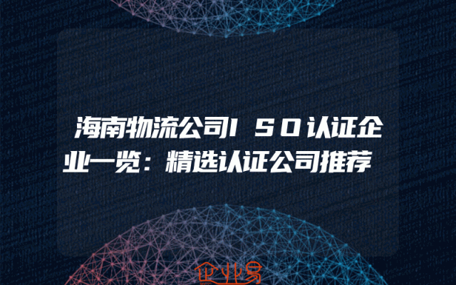- 海南物流公司ISO认证企业一览:精选认证公司推荐