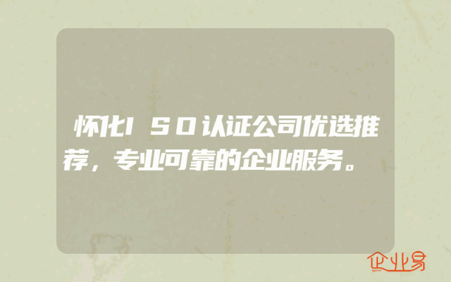 - 怀化ISO认证公司优选推荐,专业可靠的企业服务。