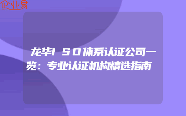 - 龙华ISO体系认证公司一览:专业认证机构精选指南