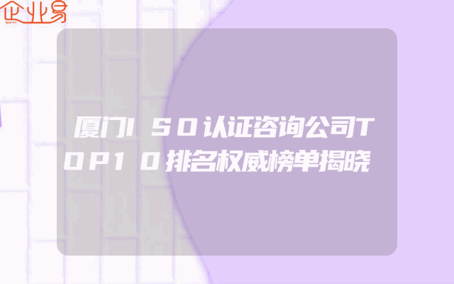 - 厦门ISO认证咨询公司TOP10排名权威榜单揭晓