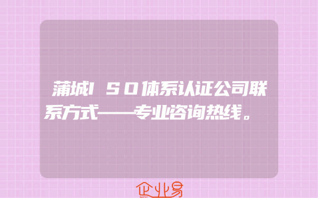 - 蒲城ISO体系认证公司联系方式——专业咨询热线。