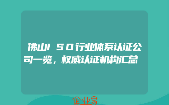 - 佛山ISO行业体系认证公司一览,权威认证机构汇总