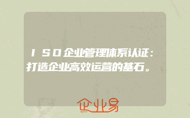 - ISO企业管理体系认证:打造企业高效运营的基石。