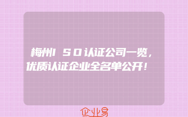 - 梅州ISO认证公司一览,优质认证企业全名单公开!