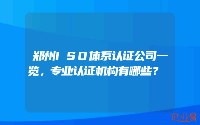 - 郑州ISO体系认证公司一览,专业认证机构有哪些?