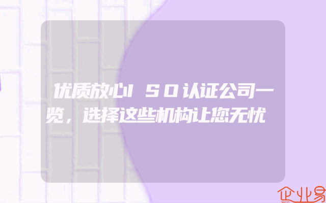 - 优质放心ISO认证公司一览,选择这些机构让您无忧