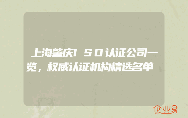 - 上海肇庆ISO认证公司一览,权威认证机构精选名单