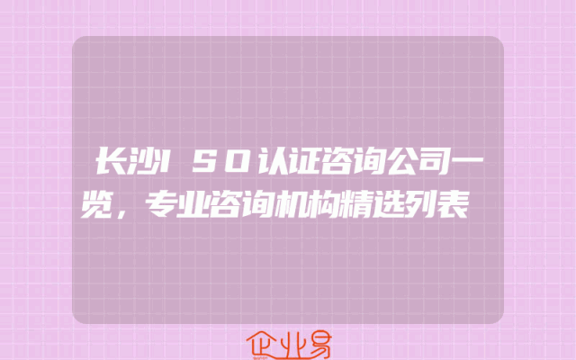 - 长沙ISO认证咨询公司一览,专业咨询机构精选列表