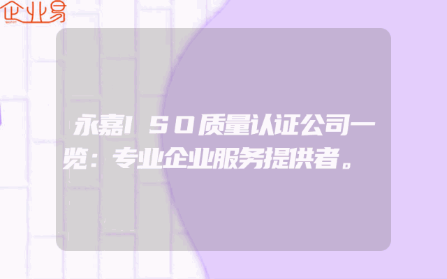 - 永嘉ISO质量认证公司一览:专业企业服务提供者。