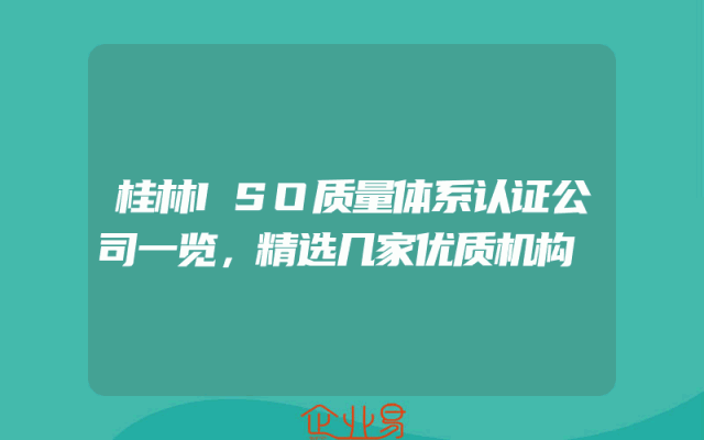 - 桂林ISO质量体系认证公司一览,精选几家优质机构