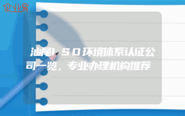 - 汕尾ISO环境体系认证公司一览,专业办理机构推荐