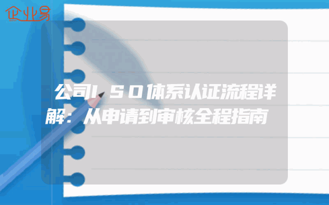 - 公司ISO体系认证流程详解:从申请到审核全程指南