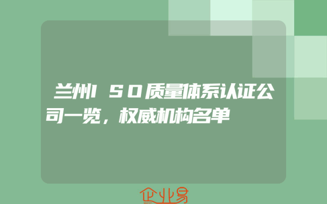 - 兰州ISO质量体系认证公司一览,权威机构名单