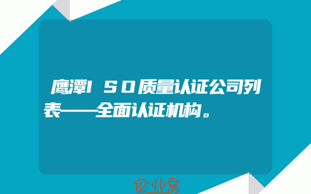 - 鹰潭ISO质量认证公司列表——全面认证机构。