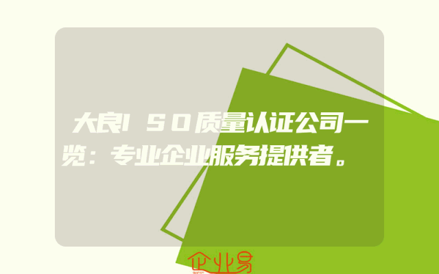 - 大良ISO质量认证公司一览:专业企业服务提供者。