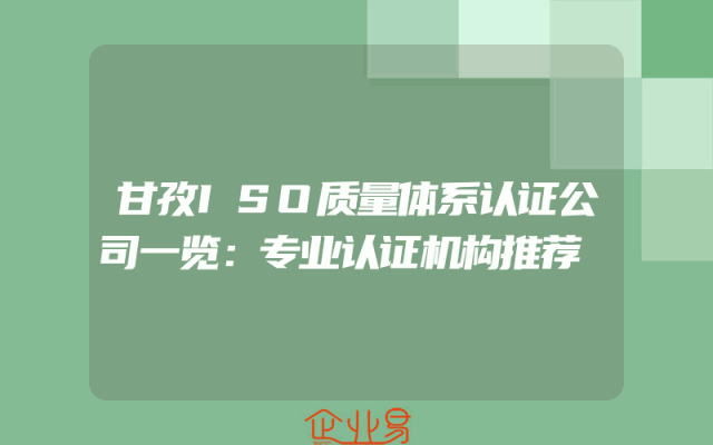 - 甘孜ISO质量体系认证公司一览:专业认证机构推荐