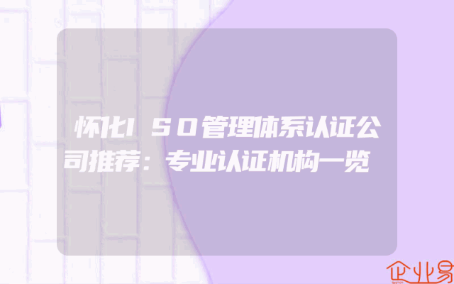 - 怀化ISO管理体系认证公司推荐:专业认证机构一览