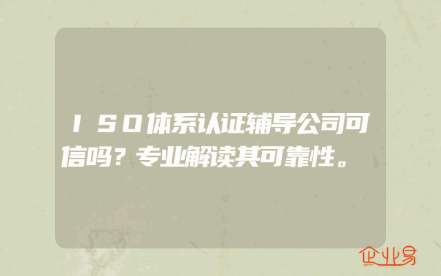 - ISO体系认证辅导公司可信吗?专业解读其可靠性。