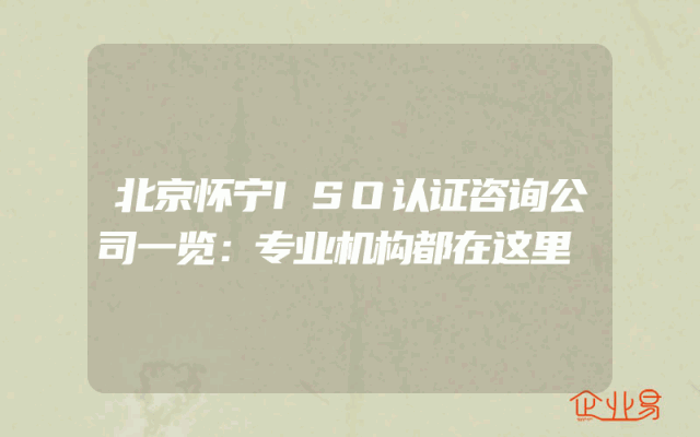 - 北京怀宁ISO认证咨询公司一览:专业机构都在这里