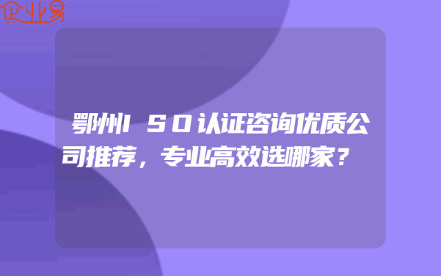 - 鄂州ISO认证咨询优质公司推荐,专业高效选哪家?
