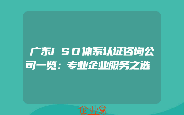 - 广东ISO体系认证咨询公司一览:专业企业服务之选
