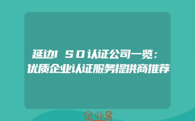 - 延边ISO认证公司一览:优质企业认证服务提供商推荐