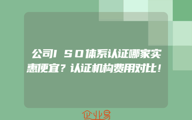 - 公司ISO体系认证哪家实惠便宜?认证机构费用对比!