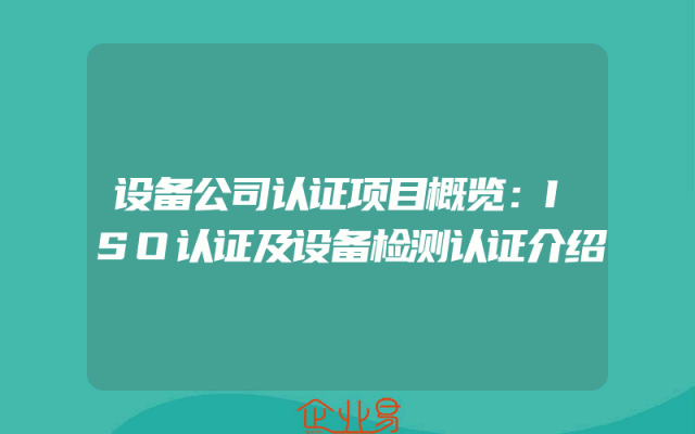 - 设备公司认证项目概览:ISO认证及设备检测认证介绍