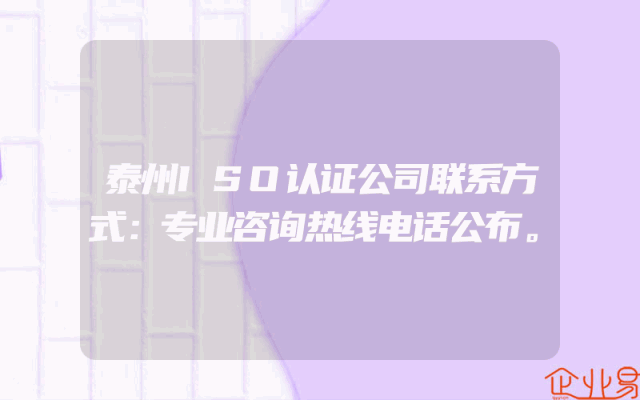 - 泰州ISO认证公司联系方式:专业咨询热线电话公布。