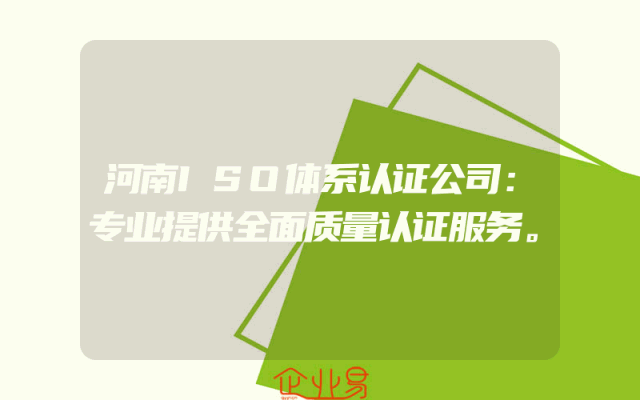 - 河南ISO体系认证公司:专业提供全面质量认证服务。