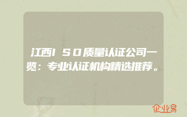 - 江西ISO质量认证公司一览:专业认证机构精选推荐。