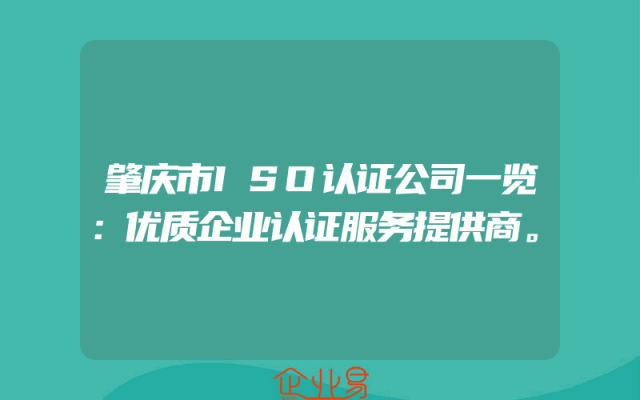 - 肇庆市ISO认证公司一览:优质企业认证服务提供商。