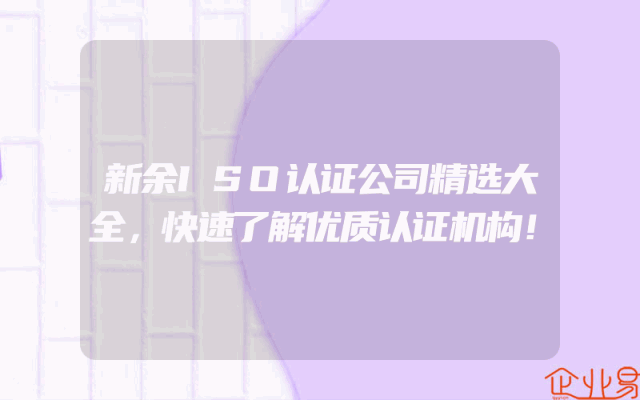 - 新余ISO认证公司精选大全,快速了解优质认证机构!