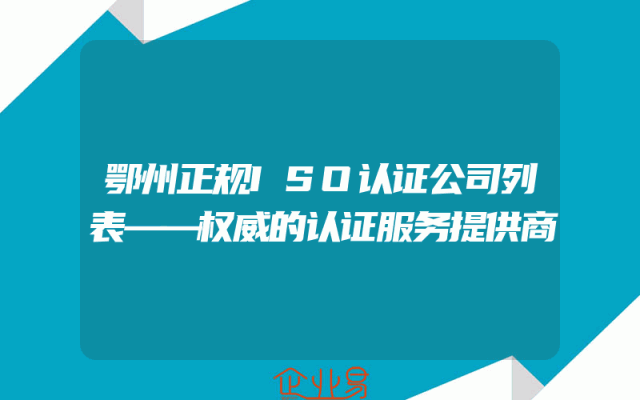 - 鄂州正规ISO认证公司列表——权威的认证服务提供商