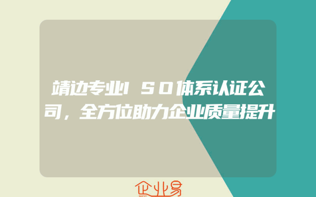 - 靖边专业ISO体系认证公司:全方位助力企业质量提升一、引言随着市场竞争日益激烈,企业要想在行业中立于不败之地,就必须不断提高产品和服务的质量。而要实现这一目标,获得ISO体系认证就显得尤为重要。靖边专业ISO体系认证公司作为本地一家领先的企